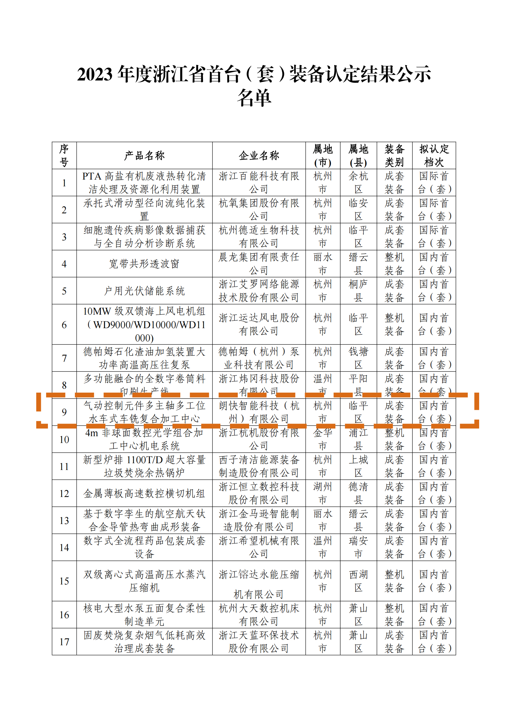 根据省委、省政府关于深入实施制造业首台(套)提升工程的有关要求,我厅联合省财政厅开展了2023年首台(套)装备认定工作。经企业申报、地方推荐、初审和专家评审,拟认定226个产品为2023年度浙江省首台(套)装备,现予以公示。