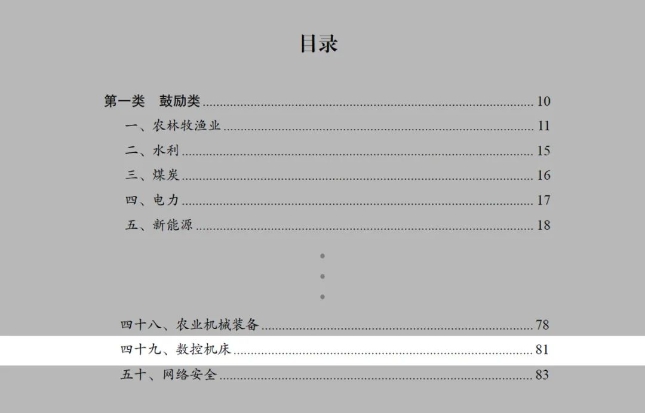 鼓励类中“数控机床”相关内容如下: