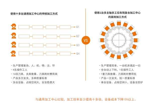 多主轴多工位车铣复合加工中心与传统通用机床相比具有以下优点: